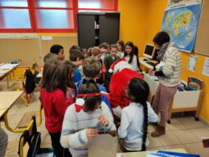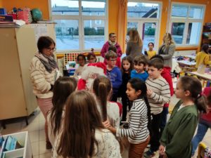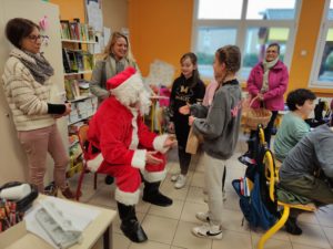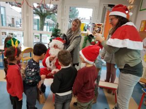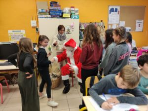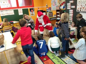 A la surprise générale, le Père Noël a bravé les pluies abondantes et est arrivé à l’école de Montaren chargé de chocolats., de friandises et de biscuits. Il est passé dans chaque classe à la rencontre des enfants , à qui il a remis un petit sachet contenant boisson, clémentine, ,papillotes et gourmandises de Noël. Et pour tous ces élèves sages, un livre à découvrir pendant les vacances. Gageons que ces enfants aux yeux émerveillés – surtout les petits de maternelle – n’oublieront pas ce moment privilégié pour lequel s’ étaient associées APE et mairie.