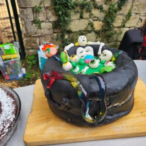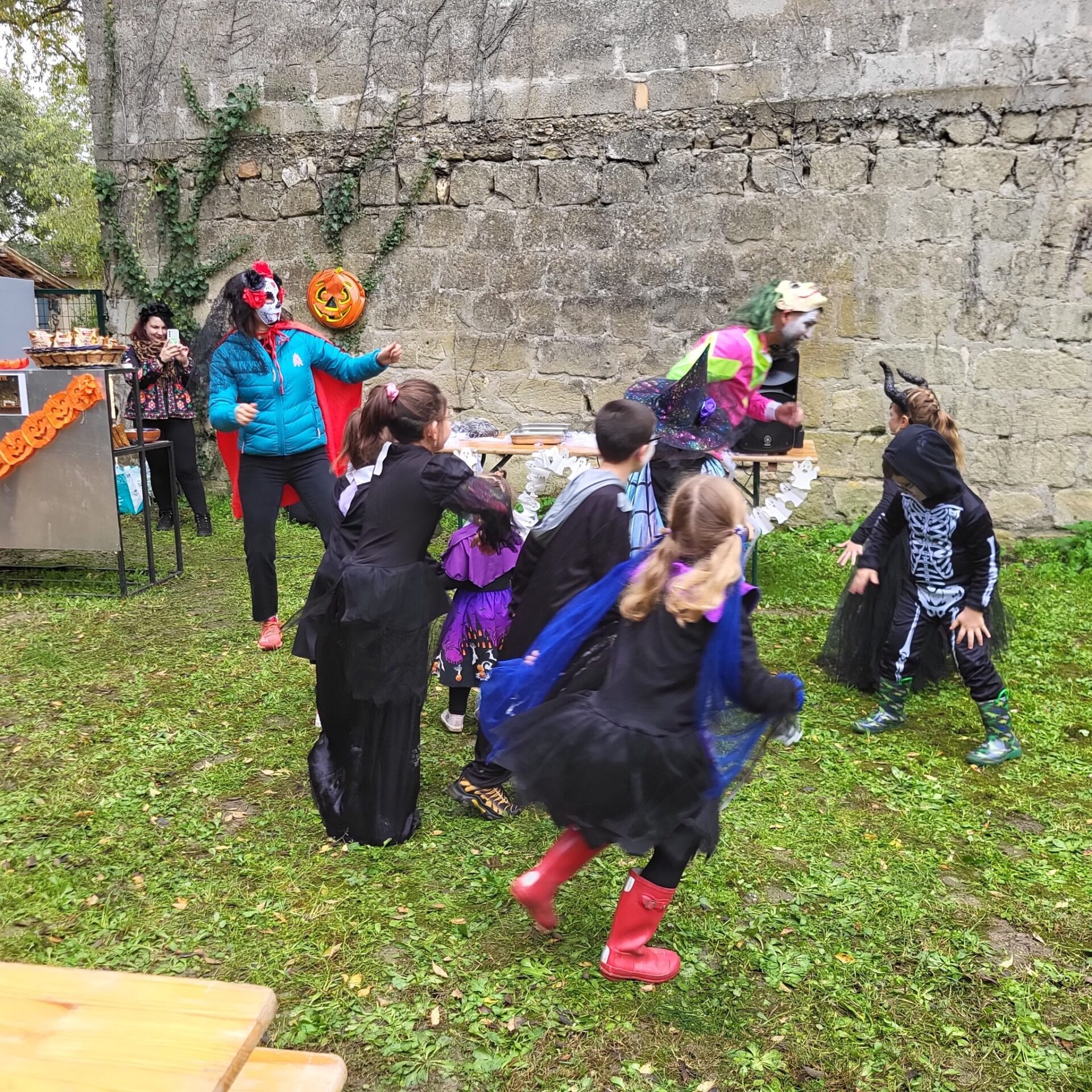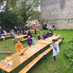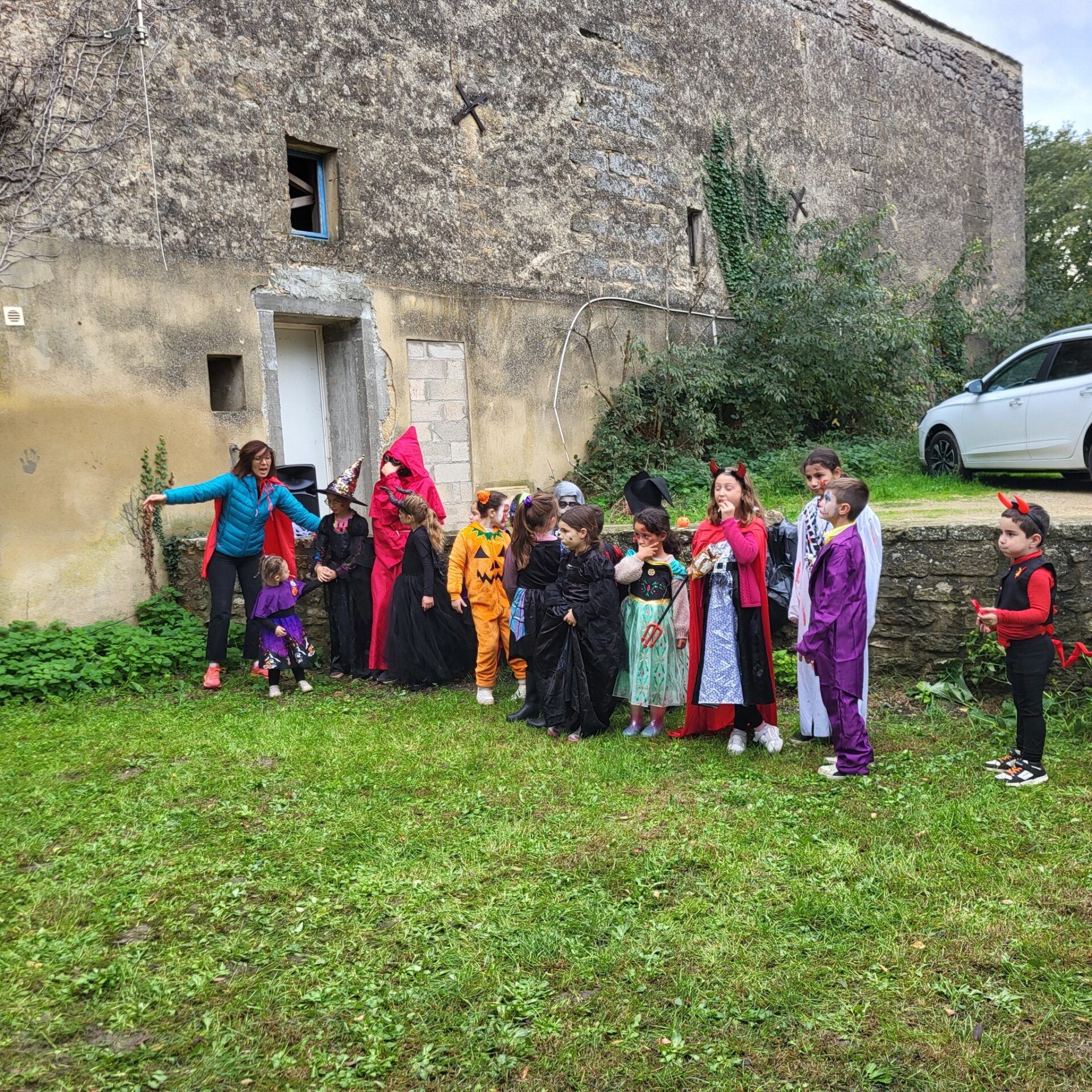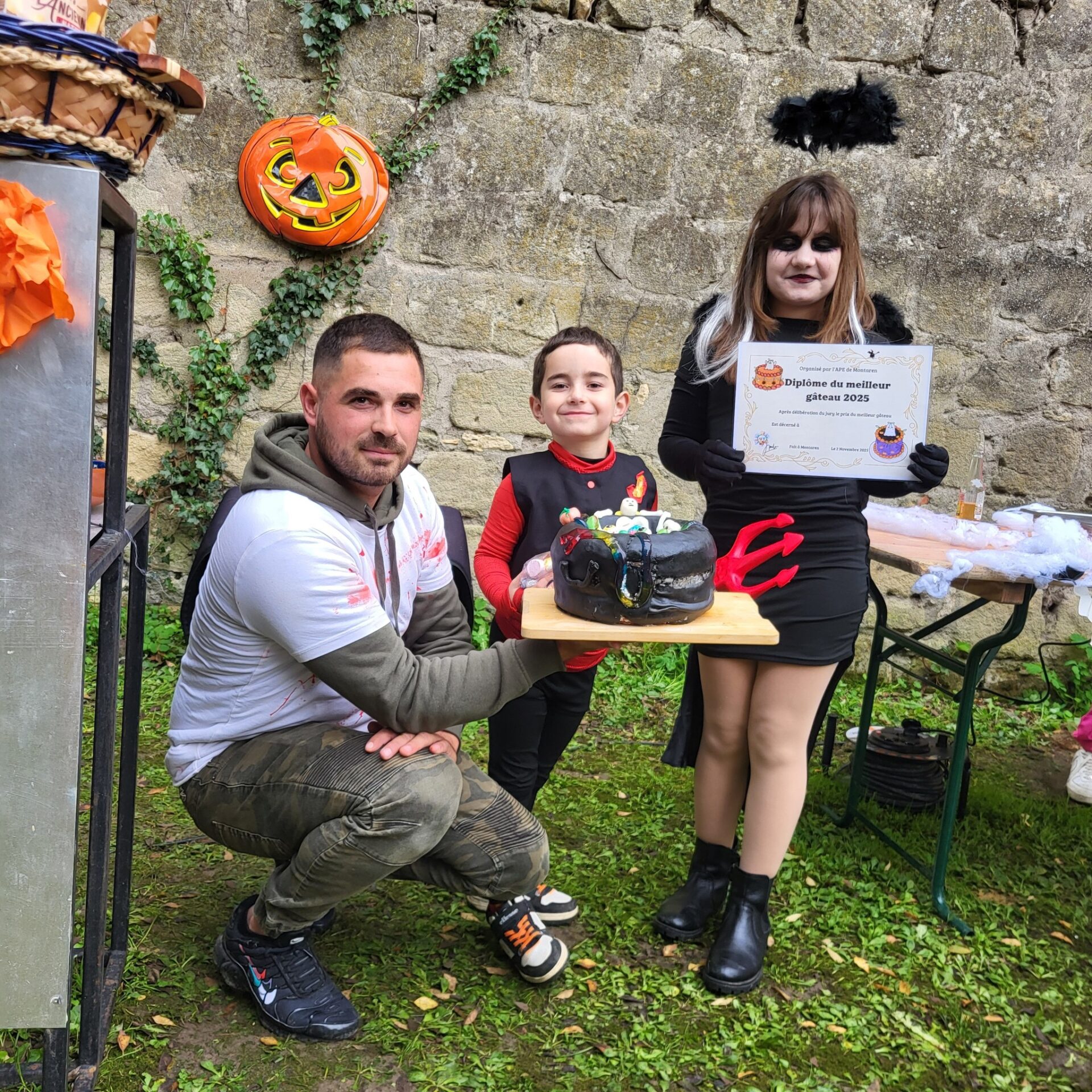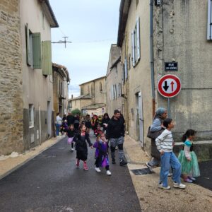 Malgré une météo capricieuse, le temps s’est relevé et a permis cette belle fête joyeuse et chaleureuse à souhait. Nombreux étaient les parents qui avaient accompagné leurs enfants et rien ne manquait, dans la plus pure tradition montadiéroise : animation dynamique , ateliers de maquillage, de dessins, jeux de course, de cache-cache au cours desquels les enfants s’en donnaient à cœur joie. Puis vint la déambulation dans le village avec des haltes où des adultes effrayants- pas si effrayants que ça !- distribuaient des bonbons ! Enfin retour aux Petits Jardins pour le célèbre concours de gâteaux suivi du non moins célèbre concours de déguisements avec des gagnants difficiles à départager tant les réalisations étaient de qualité !